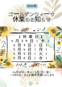 ゴールデンウィークのお知らせ