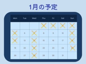 1月の営業スケジュールは上のカレンダーをご確認ください。
