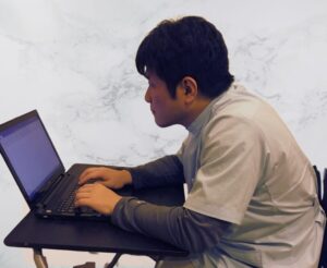 デスク作業で腕を前に出し続けると、背中は丸まりやすく、